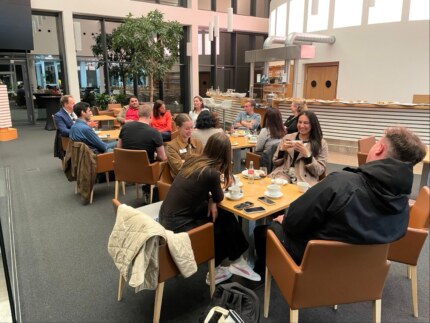 Im Anschluss an die Führung kamen alle in gemütlicher Runde zusammen, um sich auszutauschen – bei leckerem Catering, gesponsert von Liebherr.